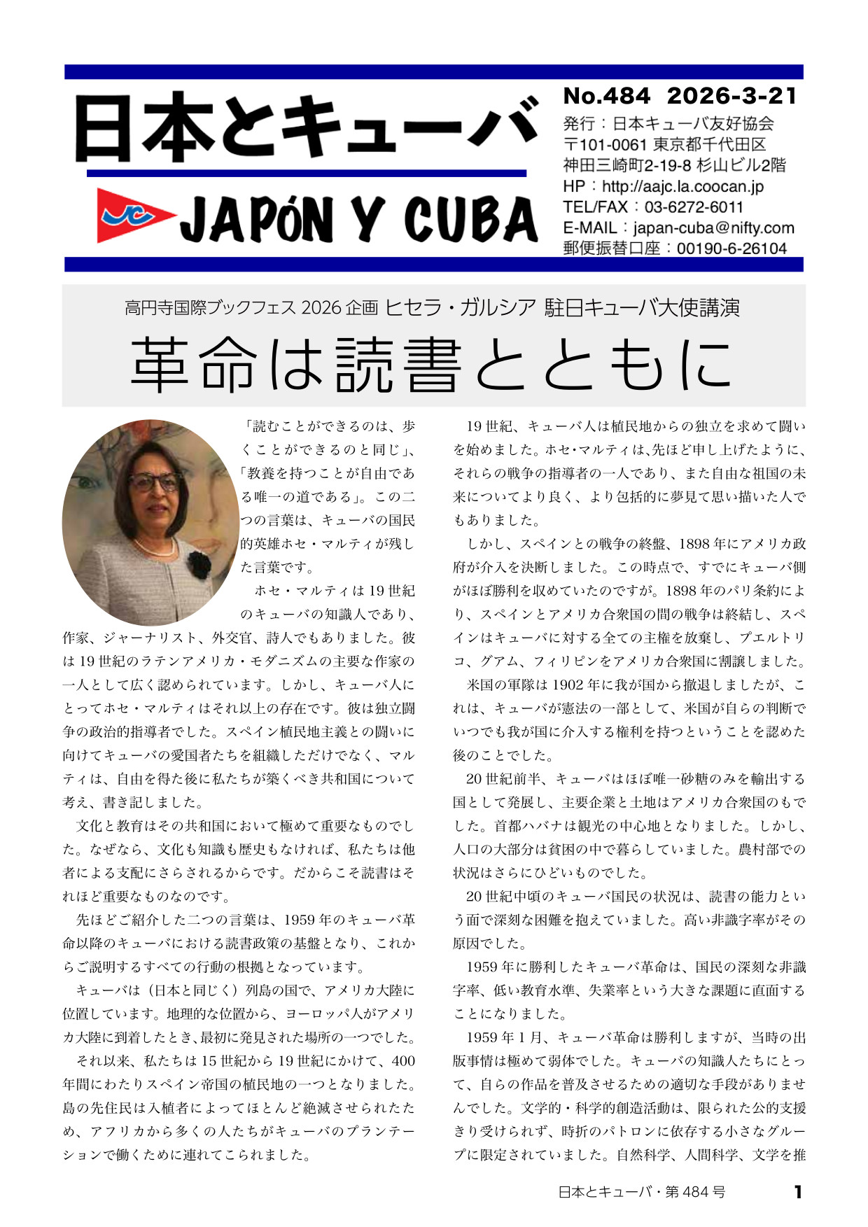 今号は「ヒセラ・ガルシア 駐日キューバ大使講演-革命は読書とともに」やその他を掲載。